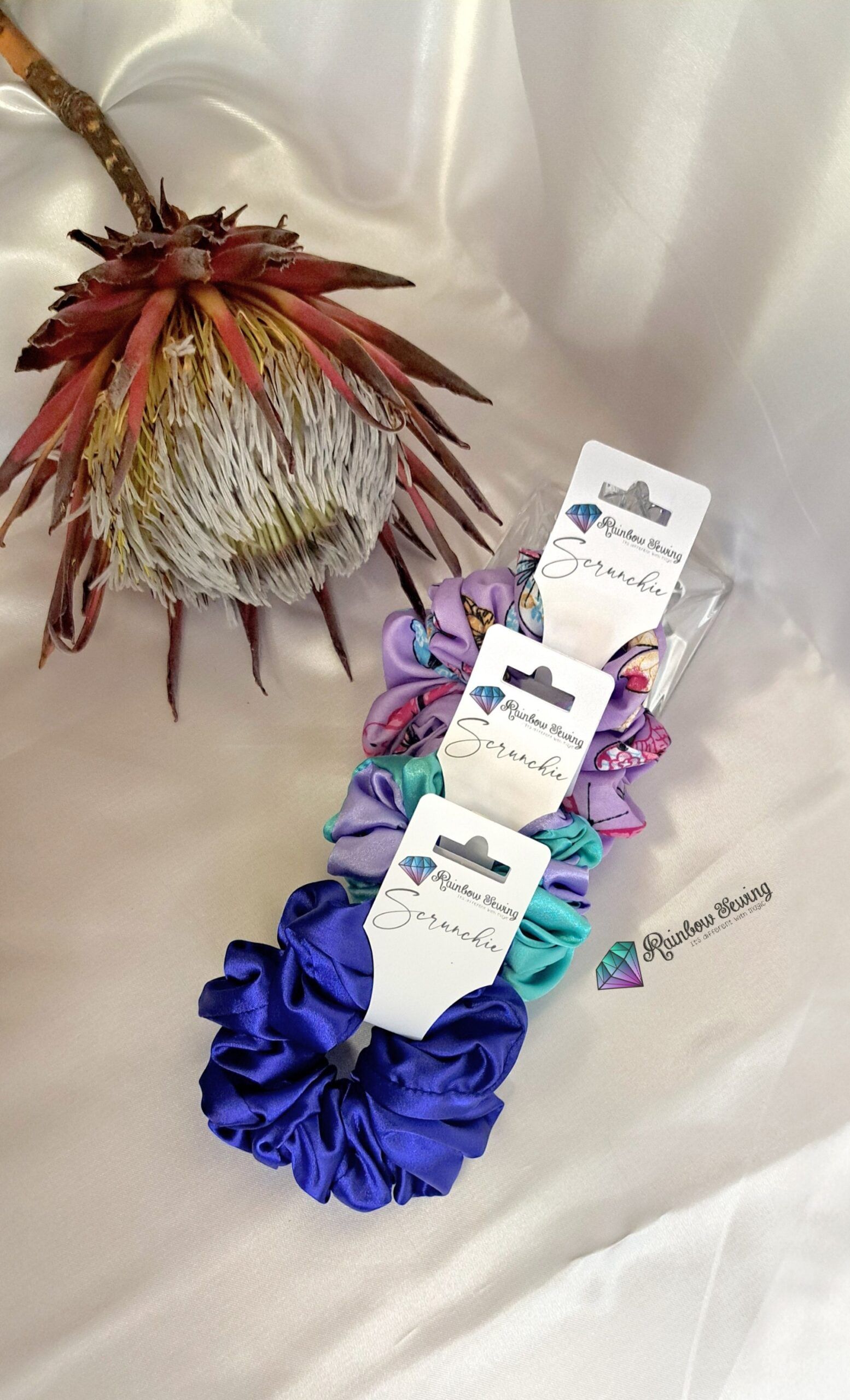 Our Daphne Collection consists of 2 silks ( blue and 2 tone purpel and light green blue ) 1 Poly Cotton ( purple butterfly)